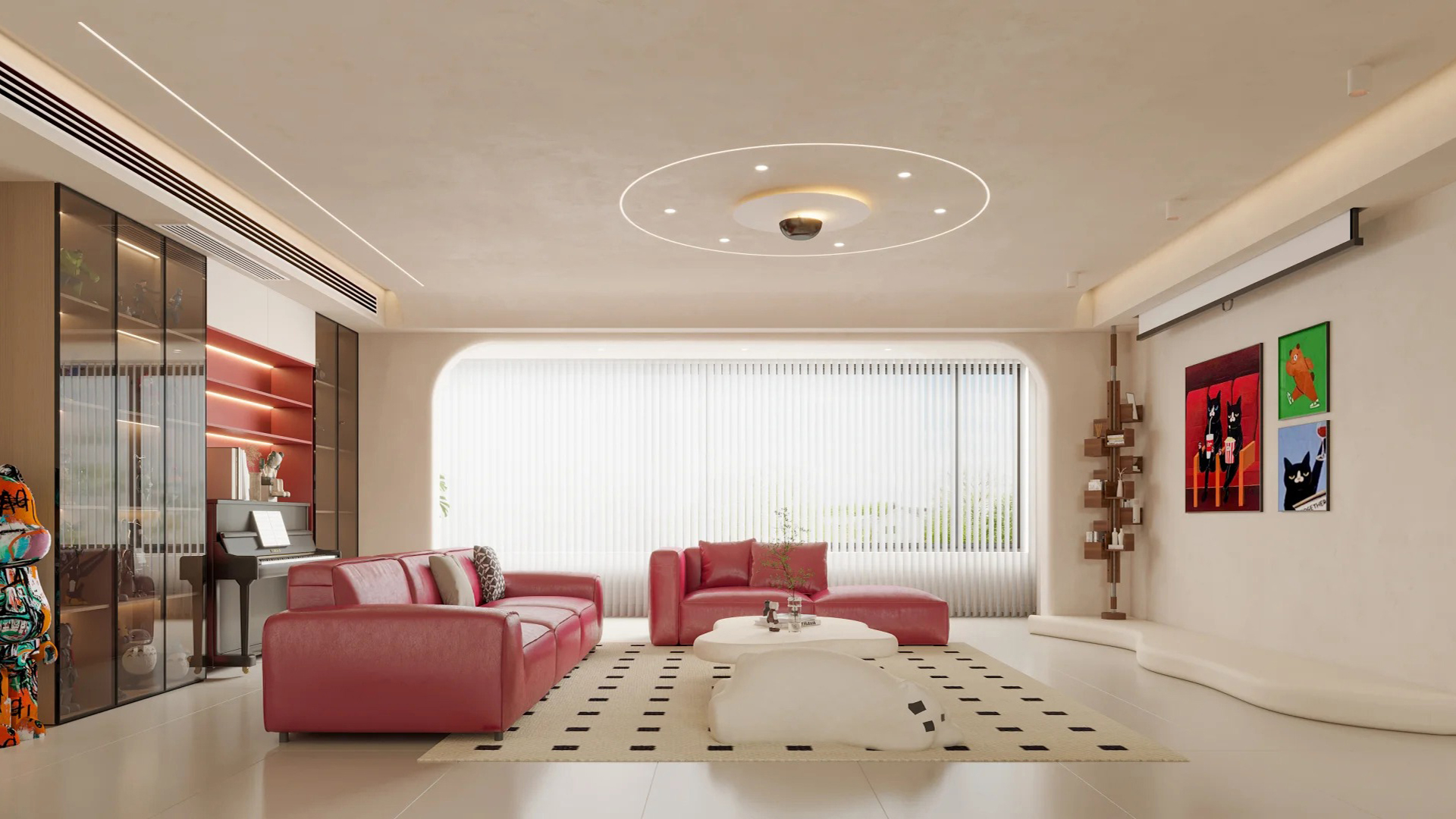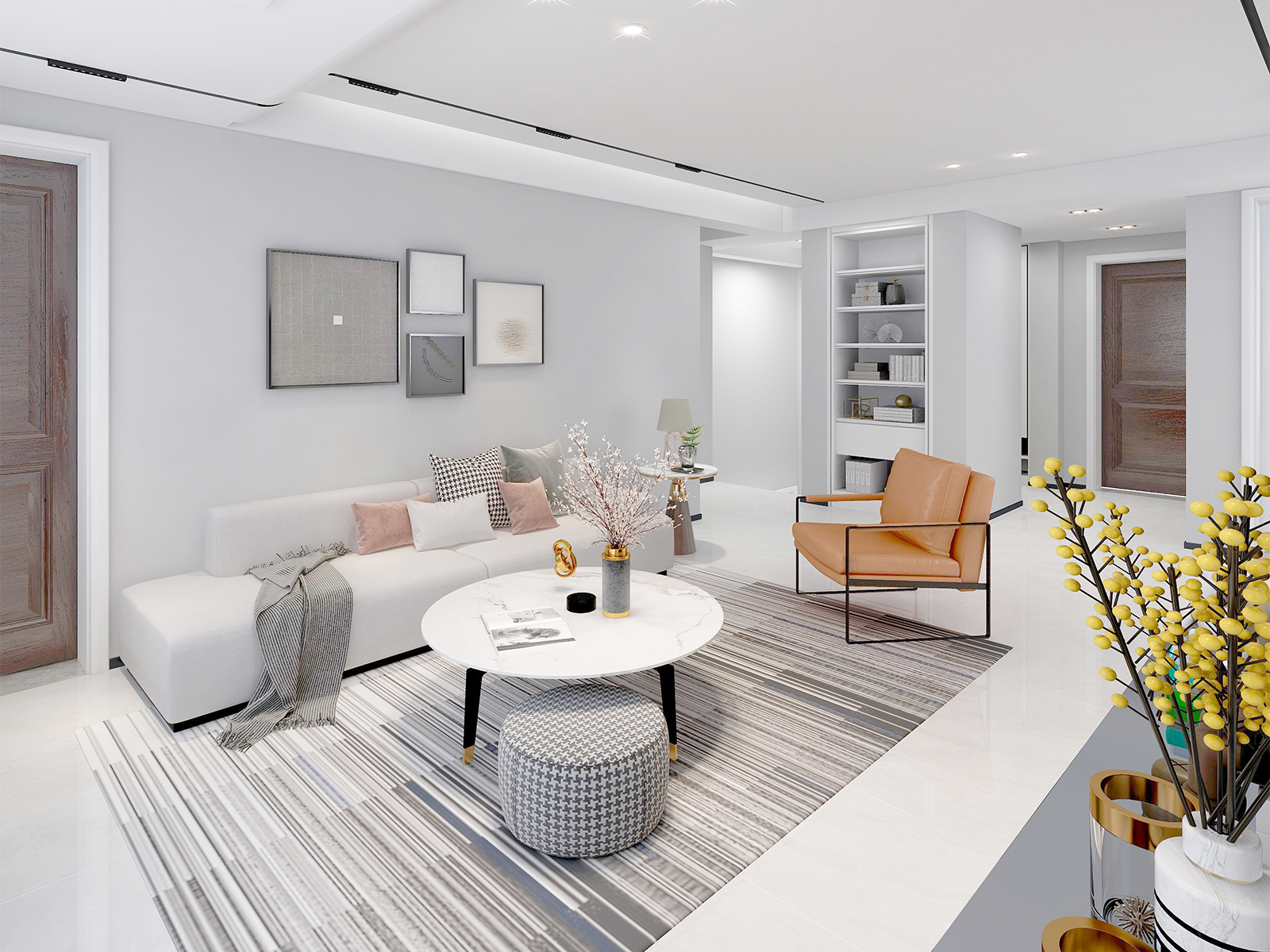 設(shè)計(jì)理念現(xiàn)代簡(jiǎn)約空間,以白米交織的清新為基底,自然光線透過大窗與半透窗簾溫柔灑落,映照一室明媚。餐桌簡(jiǎn)約而不失雅致,粉色靠墊輕點(diǎn)溫柔,幾何地毯鋪陳藝術(shù)韻律。畫作點(diǎn)綴墻面,棕色圓圈畫框引人遐想,綠植仙人掌添一抹生機(jī)盎然。整體設(shè)計(jì),既顯寬敞明亮,又不失生活情趣與藝術(shù)品味。