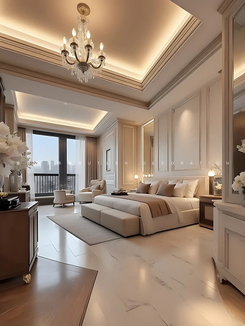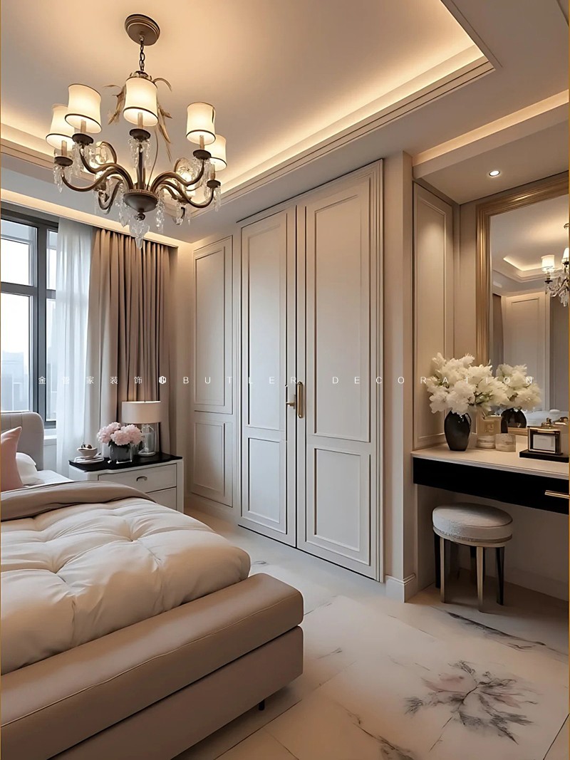 法式優(yōu)雅風裝修,精致線條與淺色調(diào)演繹浪漫空間